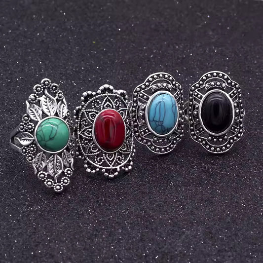 Bohemian Vintage Rings Set – Handcrafted Statement Pieces with Gemstone Accents